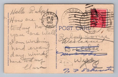 Antique Arizona Postcard TUCSON Pima County Court House 1953 to Muscoda