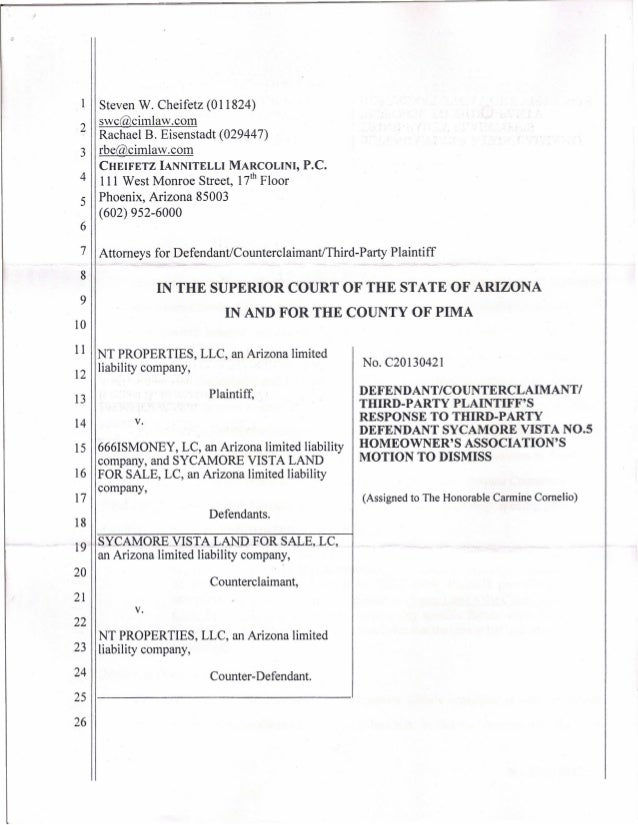 My Lawyers Respond to the HOA #39 s Motion to Dismiss