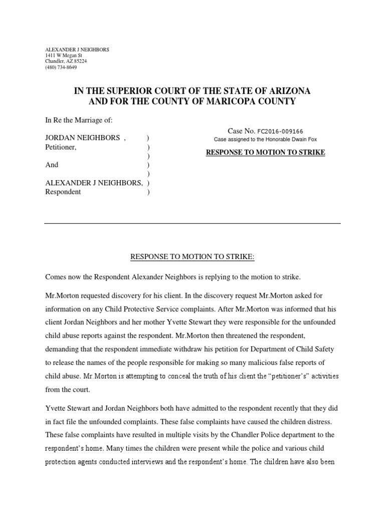 Dr Jordan Neighbors (Stewart) Fraud in Court Response To Motion To