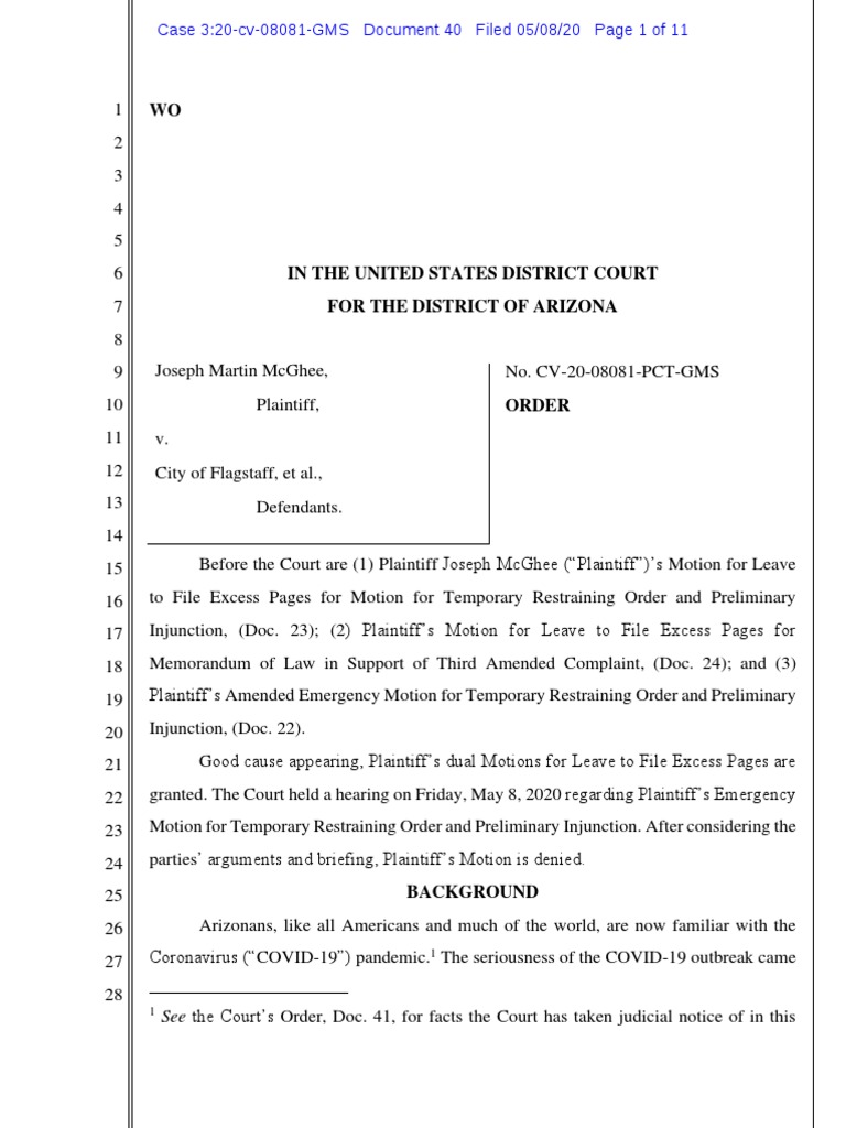(5/8/2020) Order Denying Temporary Restraining Order/Preliminary