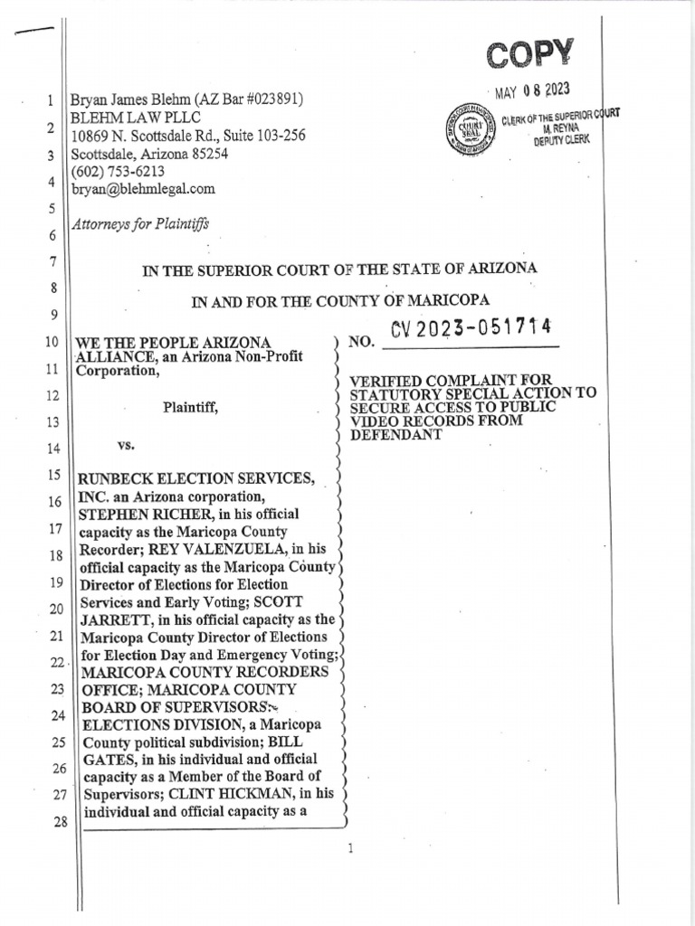 Special Action Complaint We the People Az Alliance vs Stephen Richer