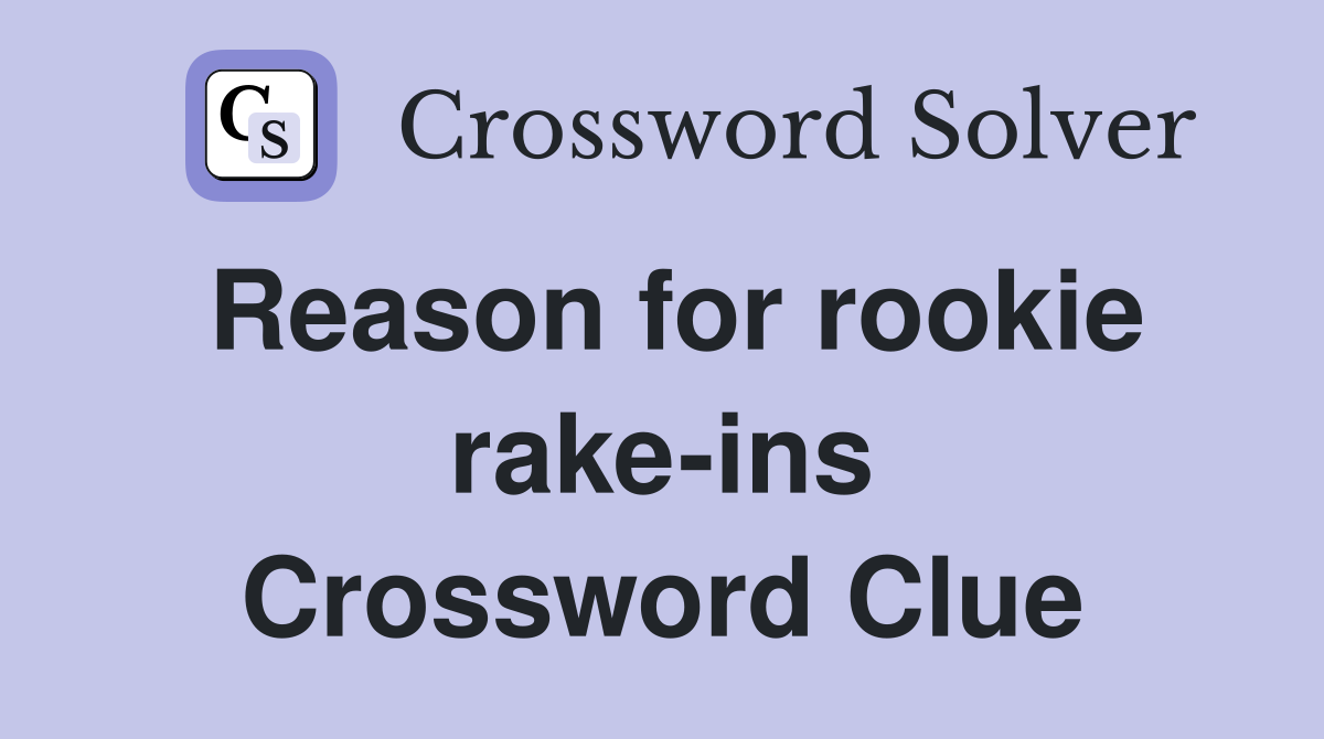Reason for rookie rake ins Crossword Clue Answers Crossword Solver