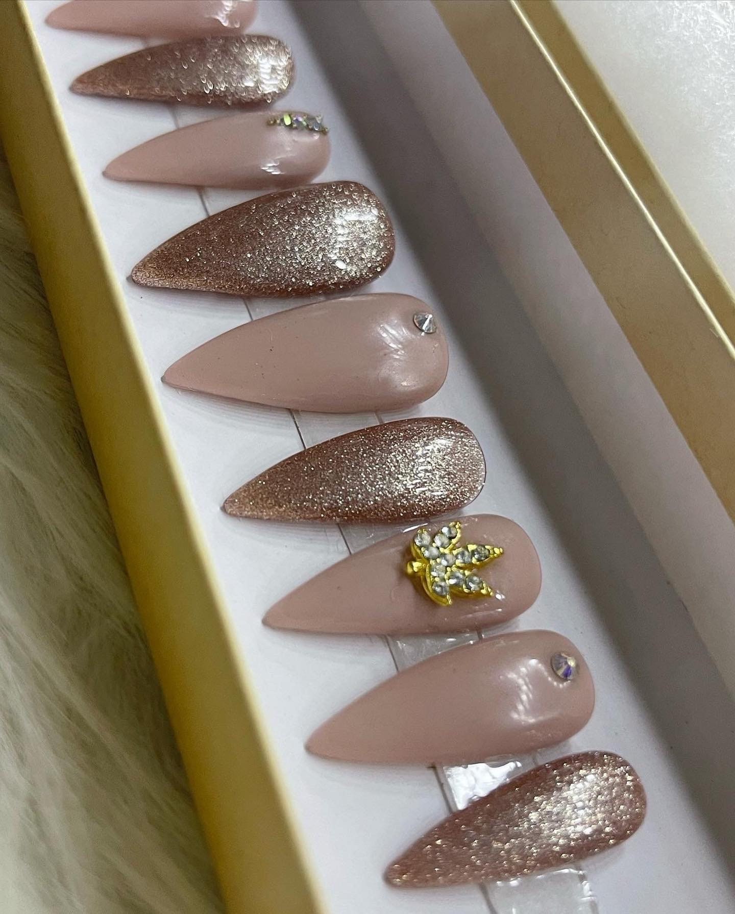 Mattestiletto nails with gold gems Gold nails Nails Stiletto
