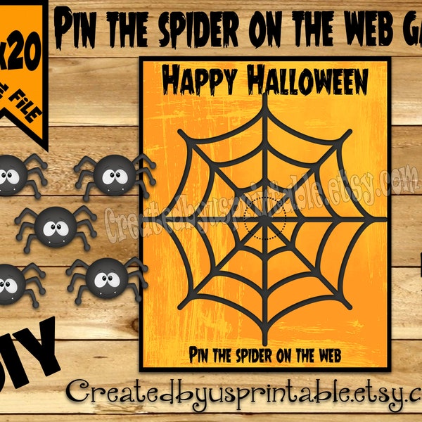 Pin the spider on the web game INSTANT DOWNLOAd Halloween Etsy