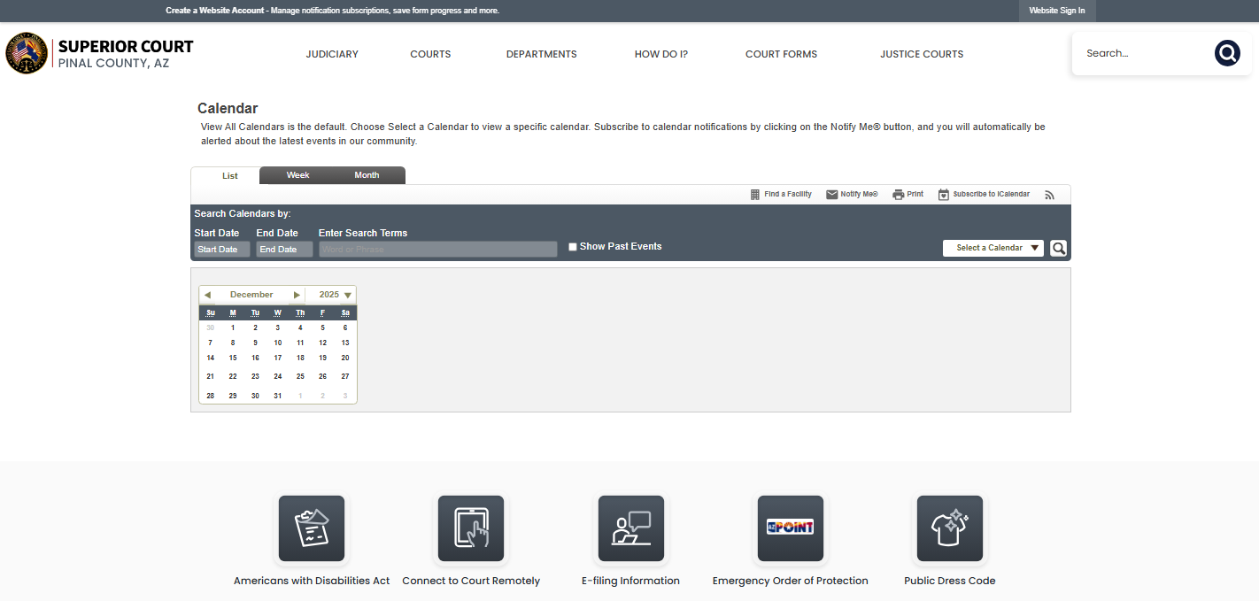 Calendar • Pinal County Superior Court AZ • CivicEngage