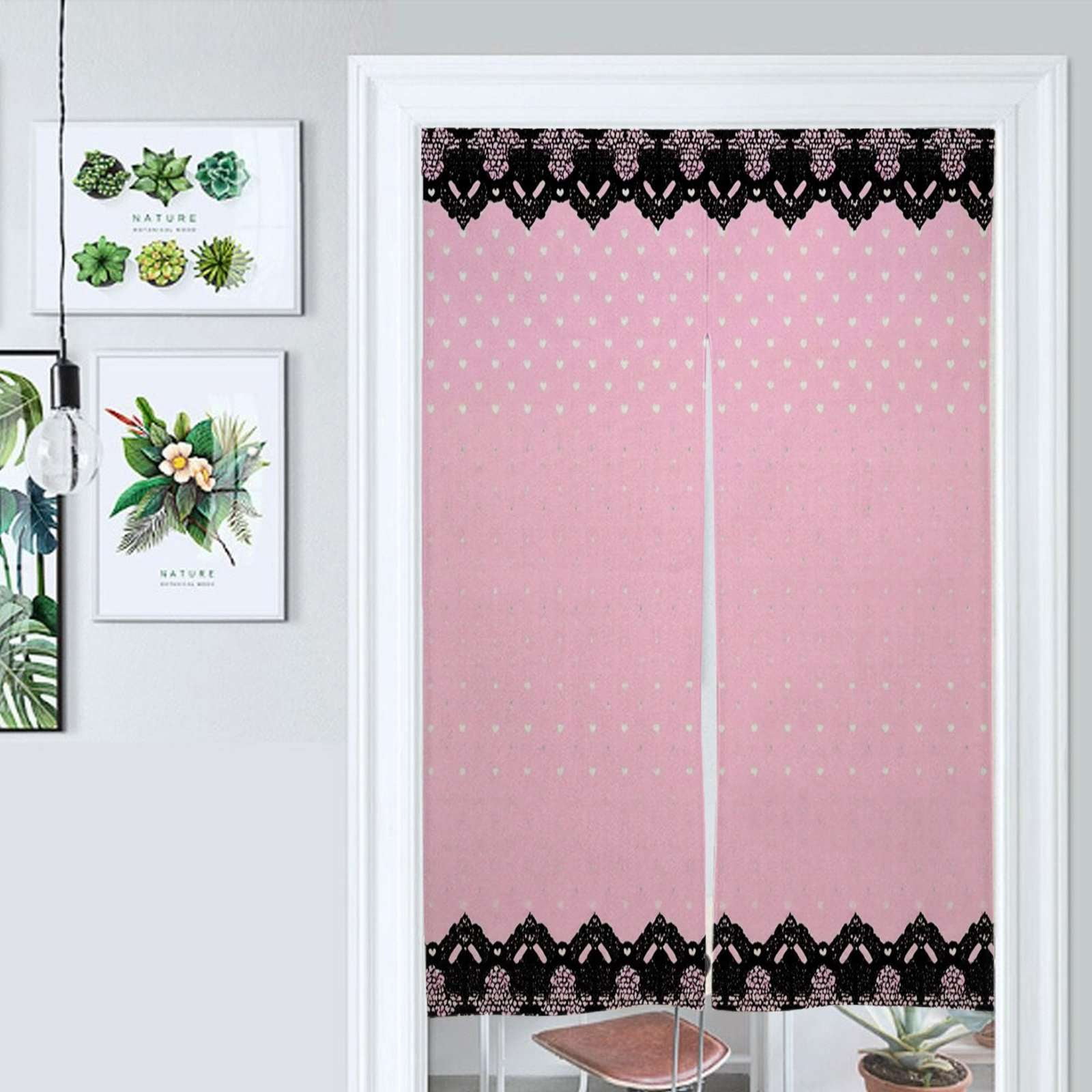 Pink Polka Dot Lace Border Door Curtain Nordic Living Room DoorCurtain