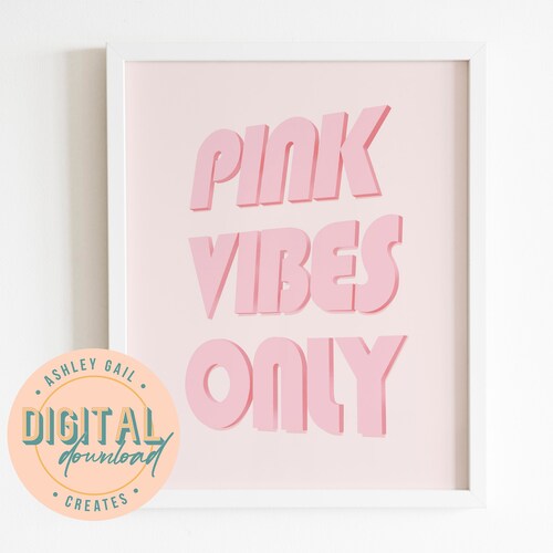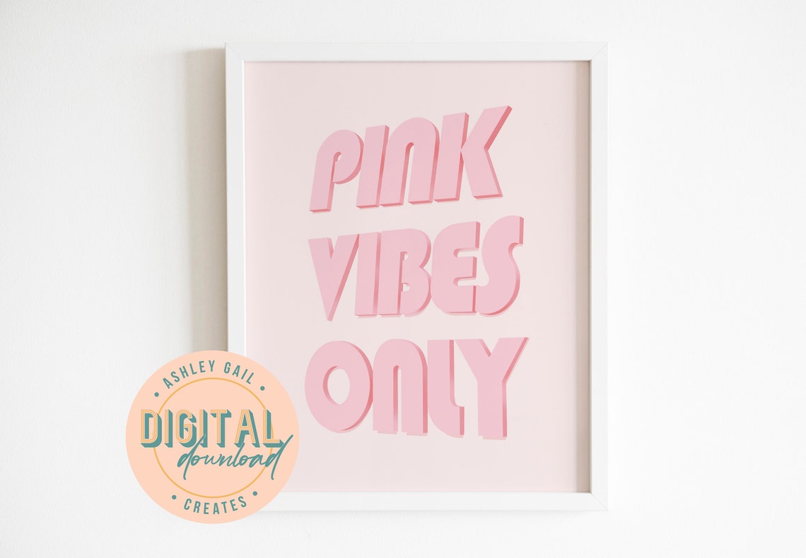 Pink Vibes Only Print Pink Wall Decor Pink Print Digital Etsy