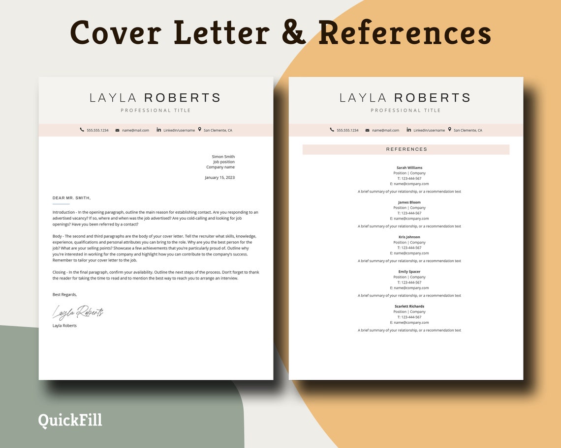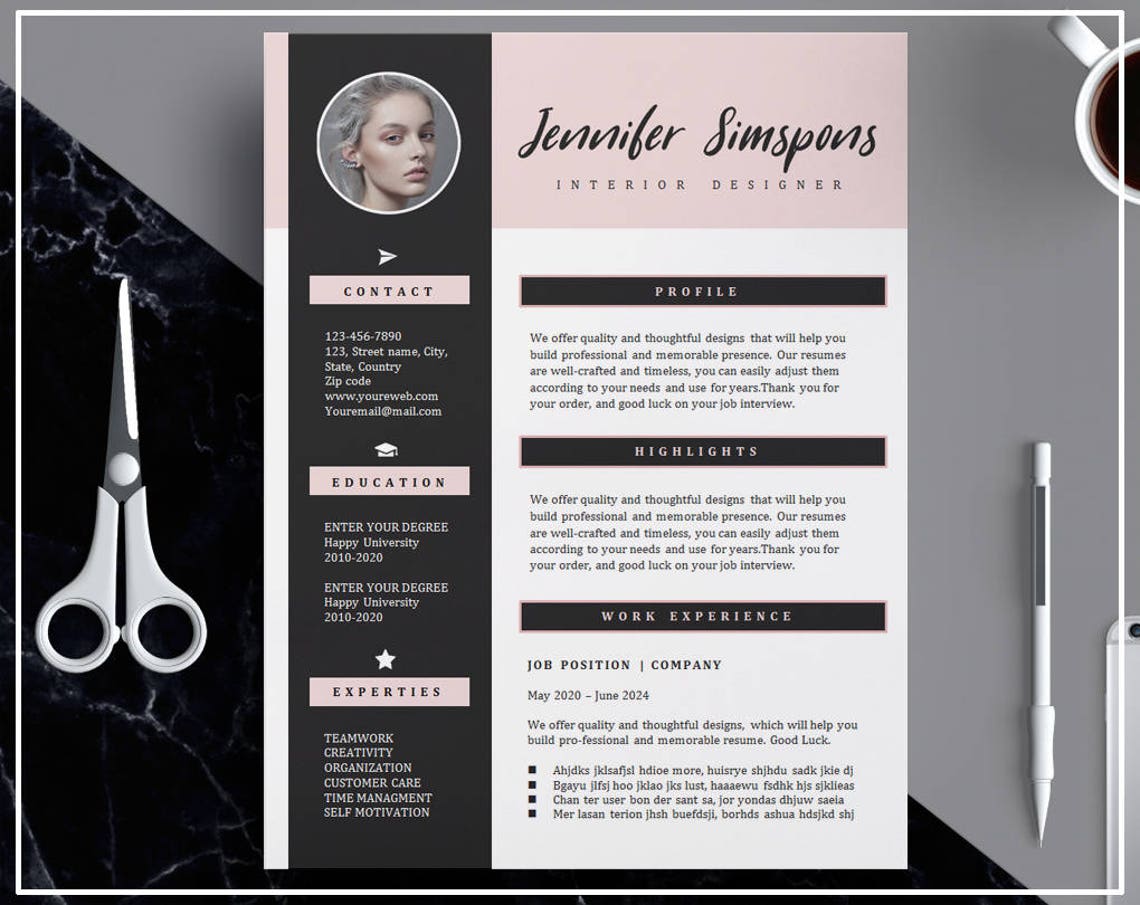 Pink Resume Template/ Pink CV Template/ Creative Resume Etsy