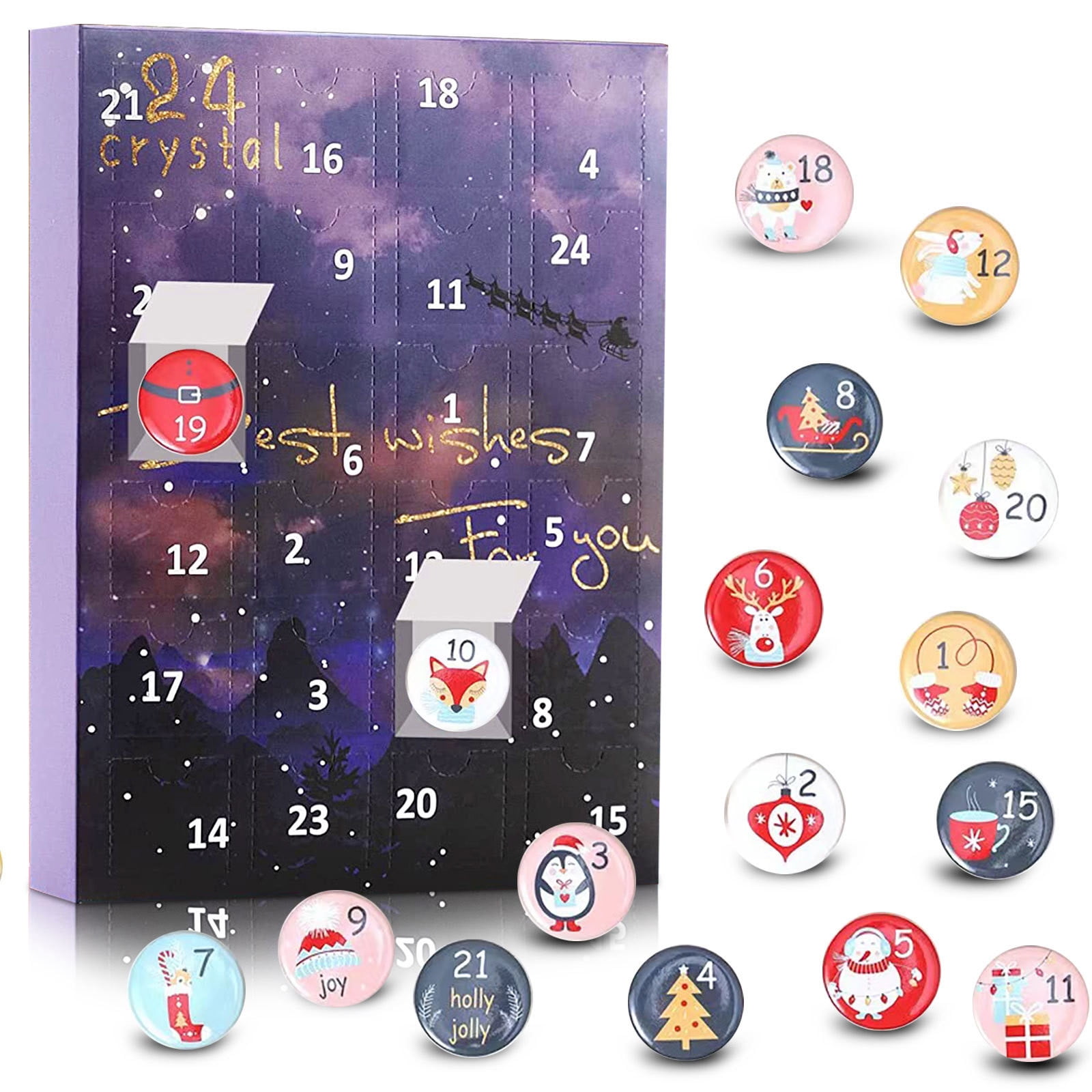 24Pcs Christmas Button Pins Advent Calendar Number Grandado