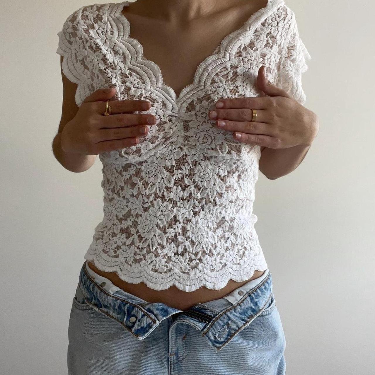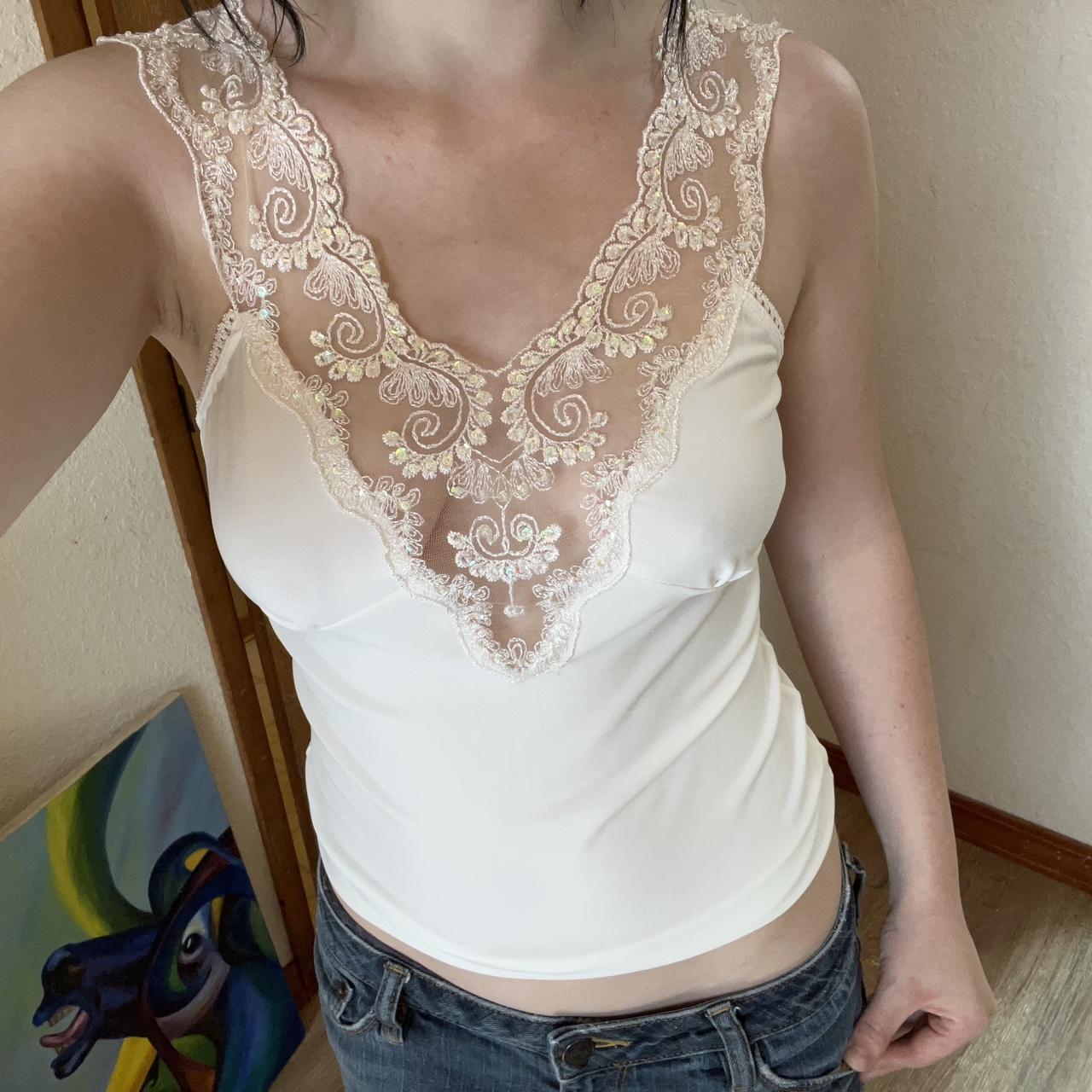 White lace bedazzled cami brand: Rave size: L ( Depop