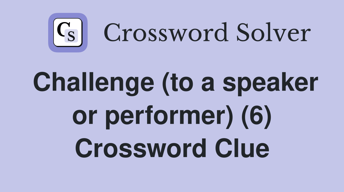 Challenge (to a speaker or performer) (6) Crossword Clue Answers