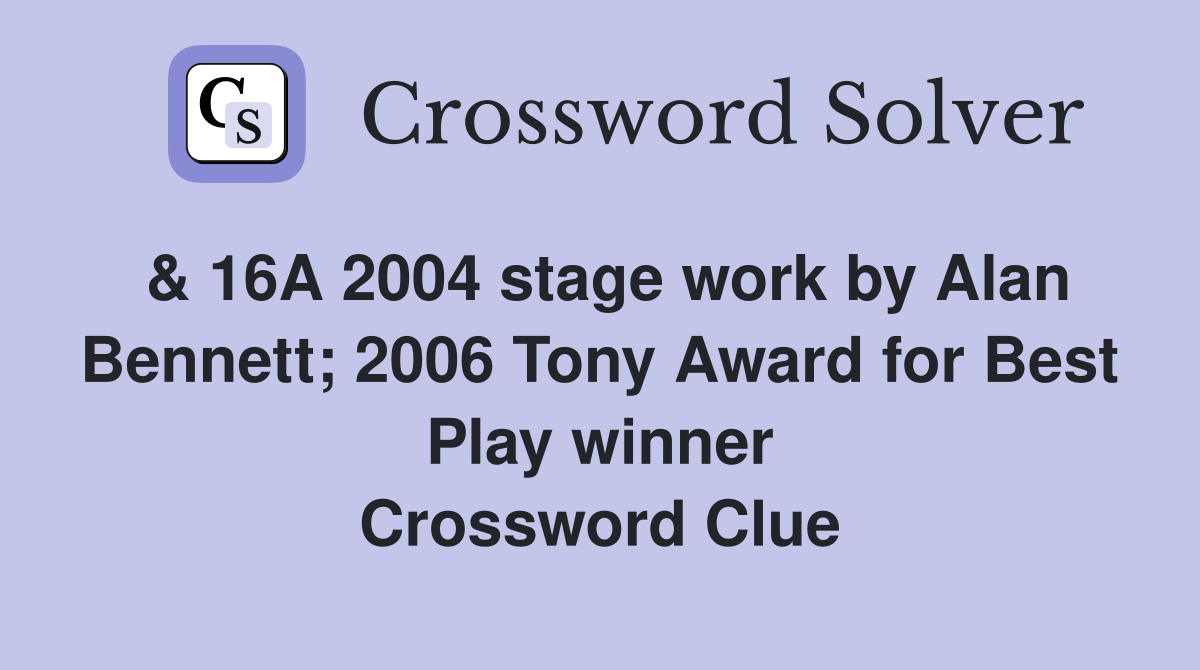 16A 2004 stage work by Alan Bennett 2006 Tony Award for Best Play