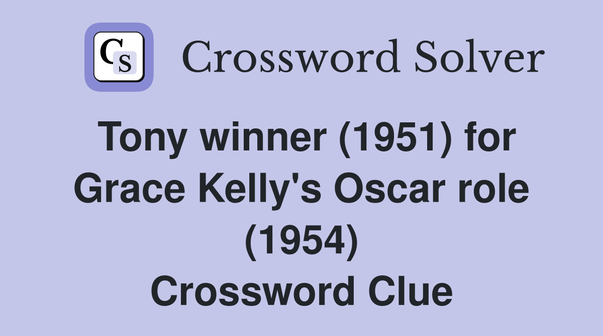 Tony winner (1951) for Grace Kelly s Oscar role (1954) Crossword Clue