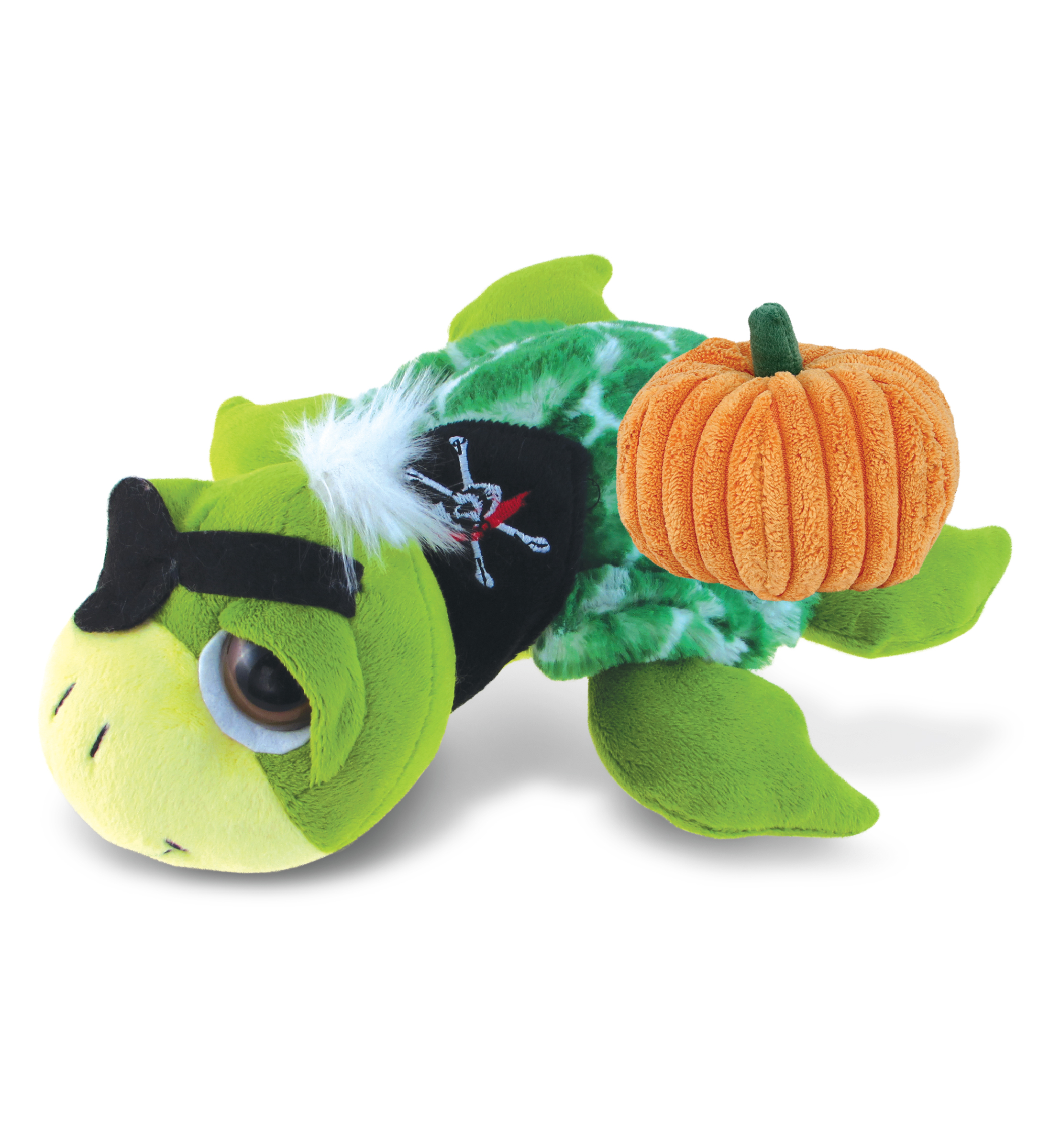 DolliBu Green Pirate Sea Turtle Stuffed Animal with Pumpkin Plush Decor