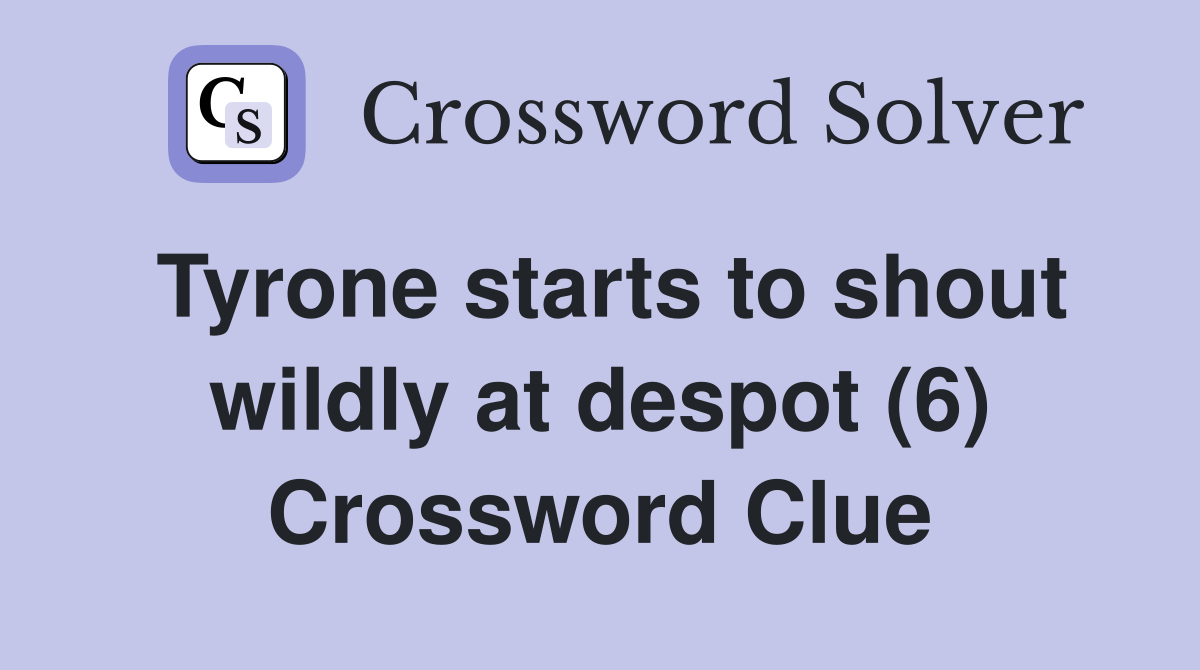 Tyrone starts to shout wildly at despot (6) Crossword Clue Answers