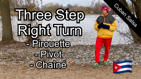Cuban Salsa: Three Step Right Turn Pirouette Pivot Chaîné