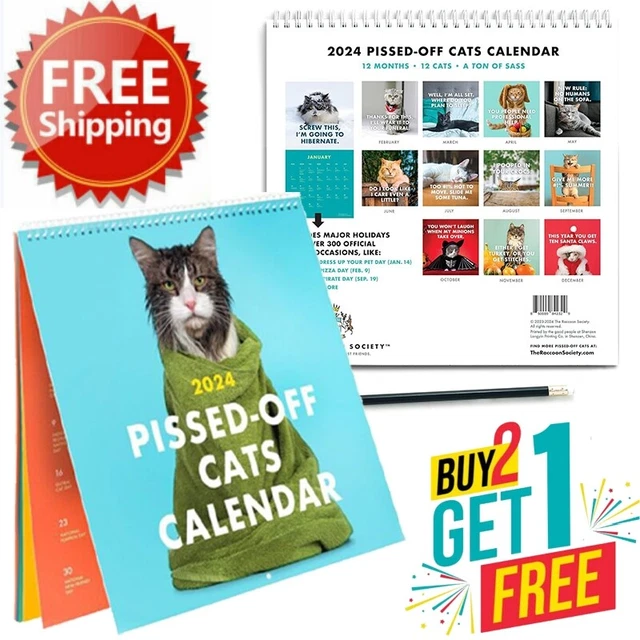 2024 Pissed Off Cats Calendar Funny wall calendar 12 Month planning