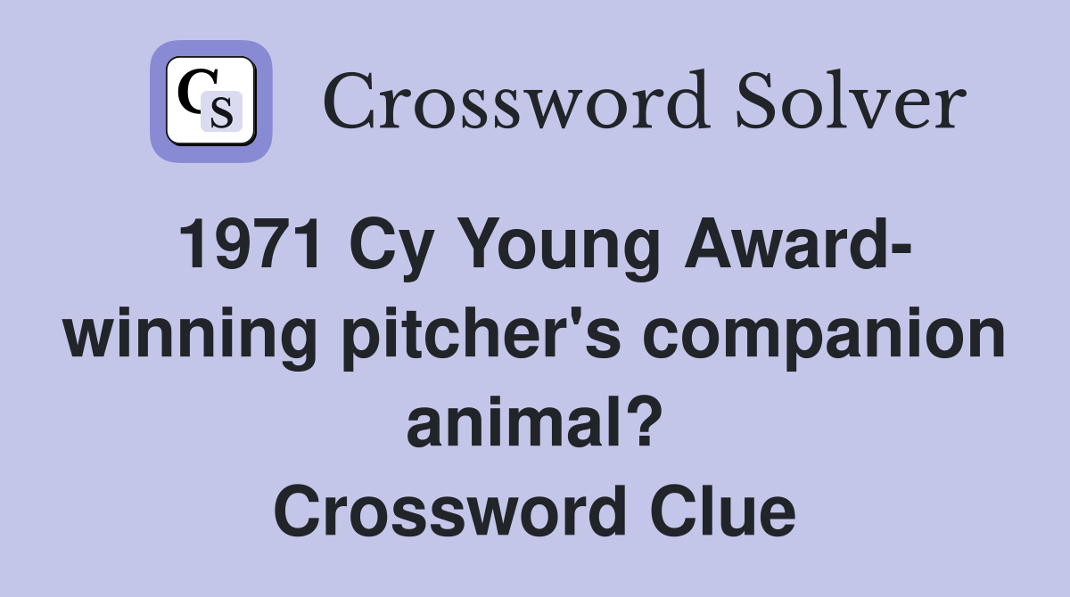 1971 Cy Young Award winning pitcher #39 s companion animal? Crossword