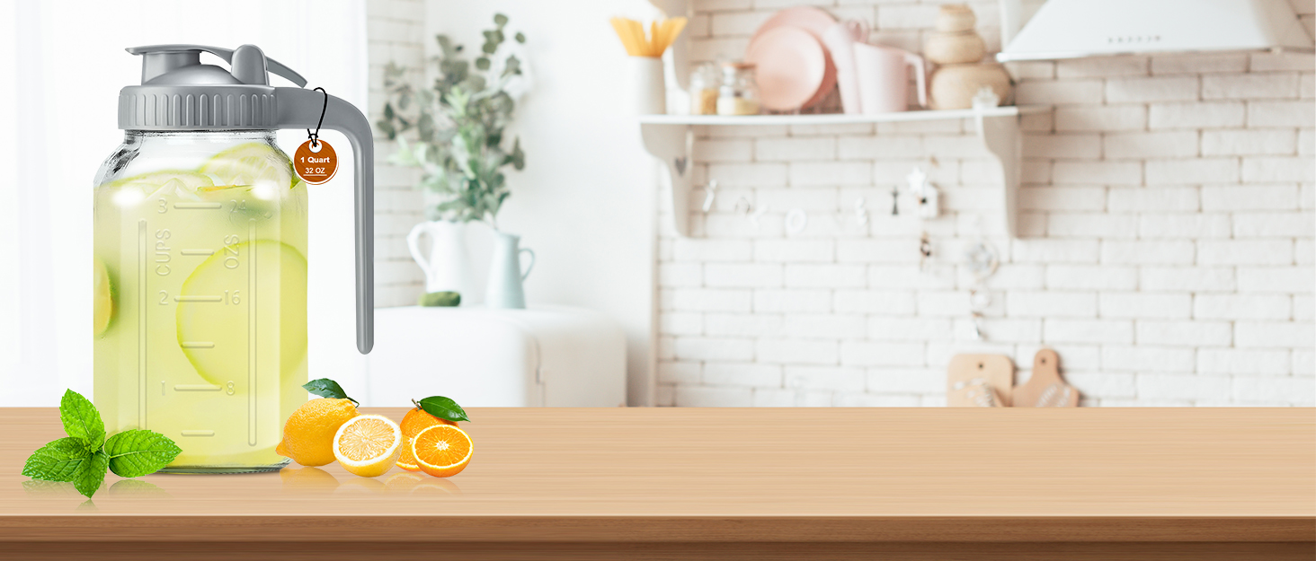 32 OZ Mason Jar Pitcher Wide Mouth 32 oz Mason Jar Pitcher with