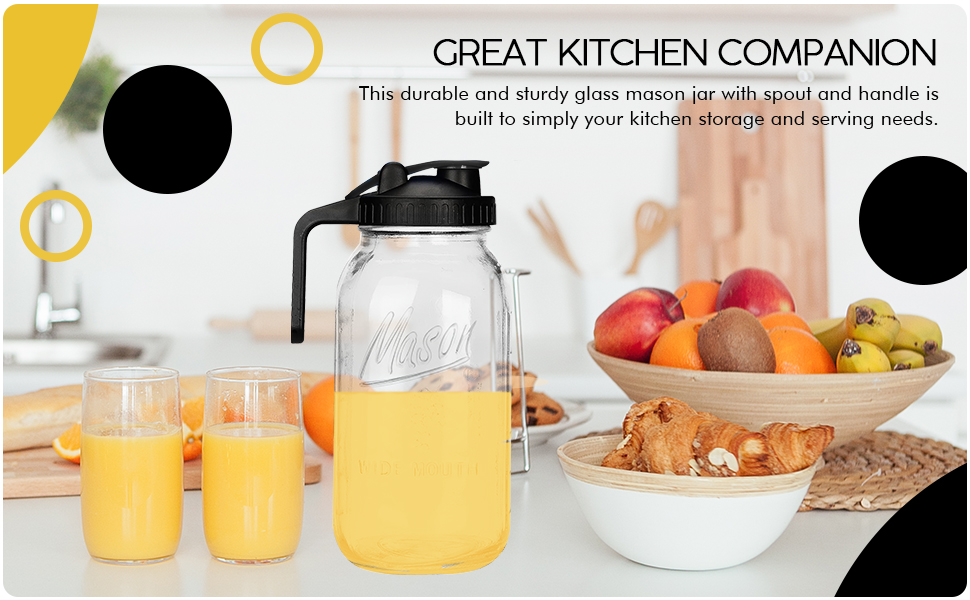 Amazon com: Amgkonp Glass Mason Jar Pitcher 64oz with Pour Spout Handle