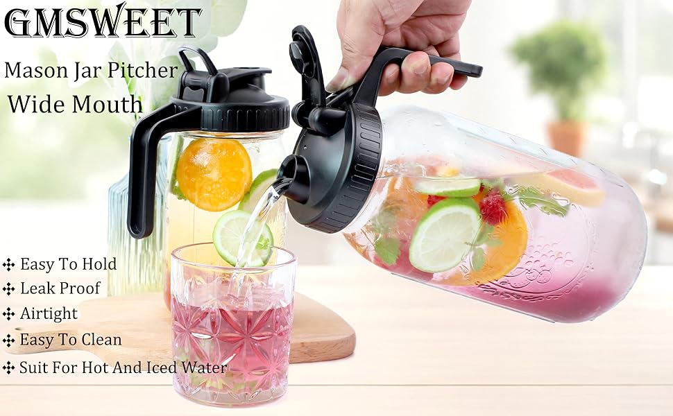 Mason Jar Pitcher with Lid Fridge Sun Tea Jar Pitcher Wide Mouth Leak