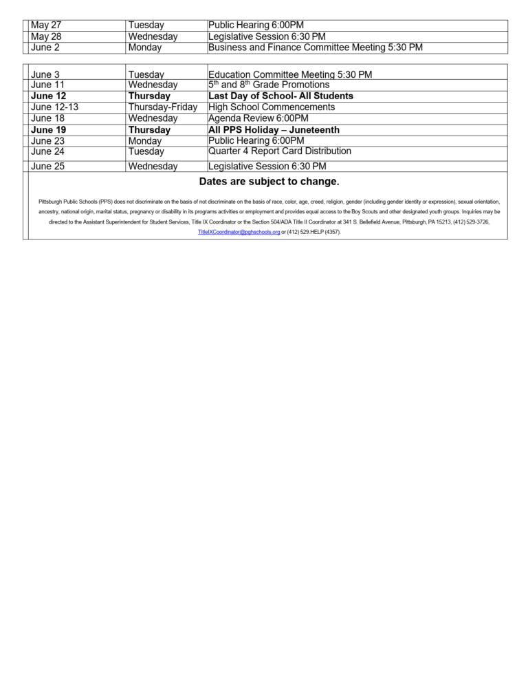 Pittsburgh Public Schools Calendar 2025 2026 Holidays