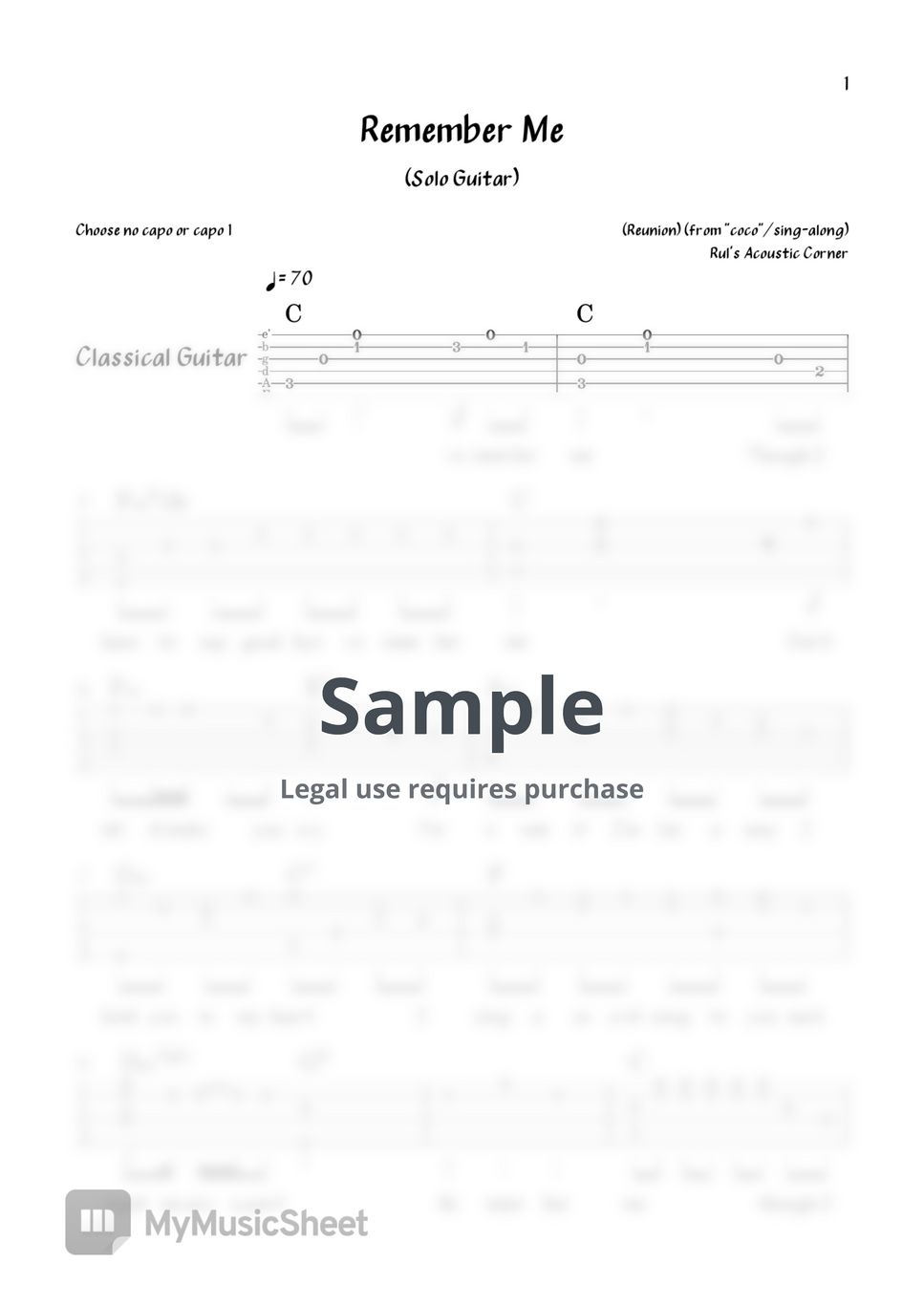 Disney Pixar #39 s quot Coco quot OST Remember Me Fingerstyle Guitar Blad