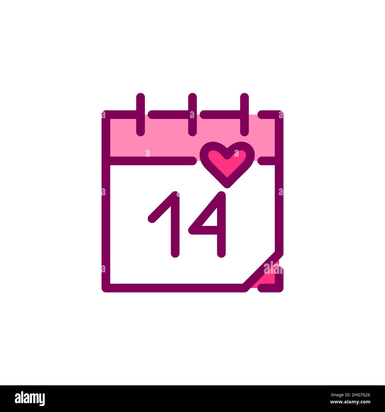 14th date on a calendar Valentine day icon Pixel perfect editable