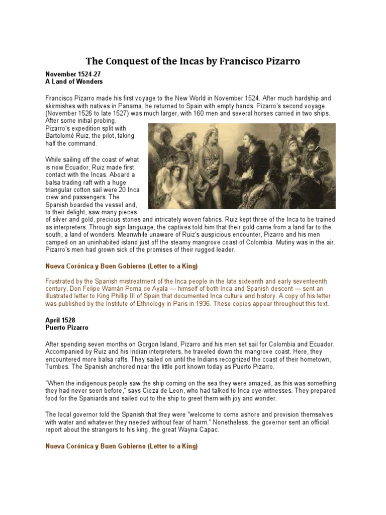 World Studies Pizarros Conquest PDF Francisco Pizarro Inca Empire