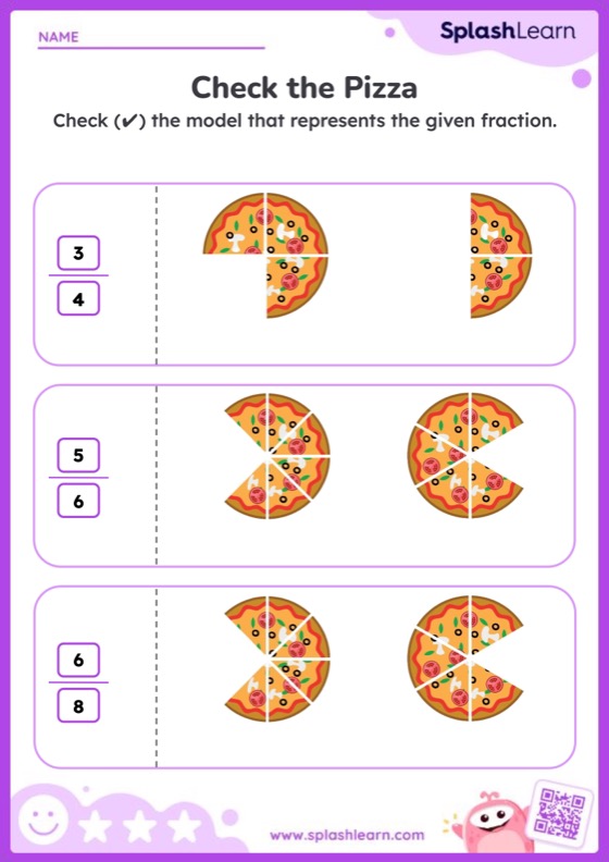 Identify the Pizza Fraction Printable Math Worksheet Worksheets Library
