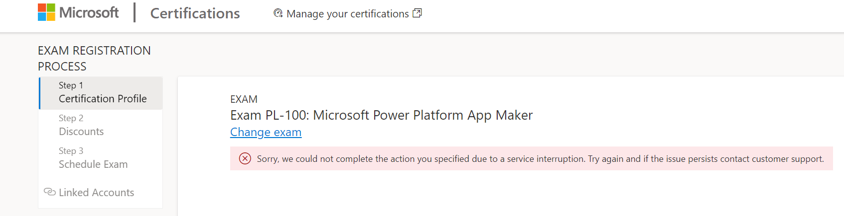Not able to schedule my pl 100 certification exam Microsoft Q A