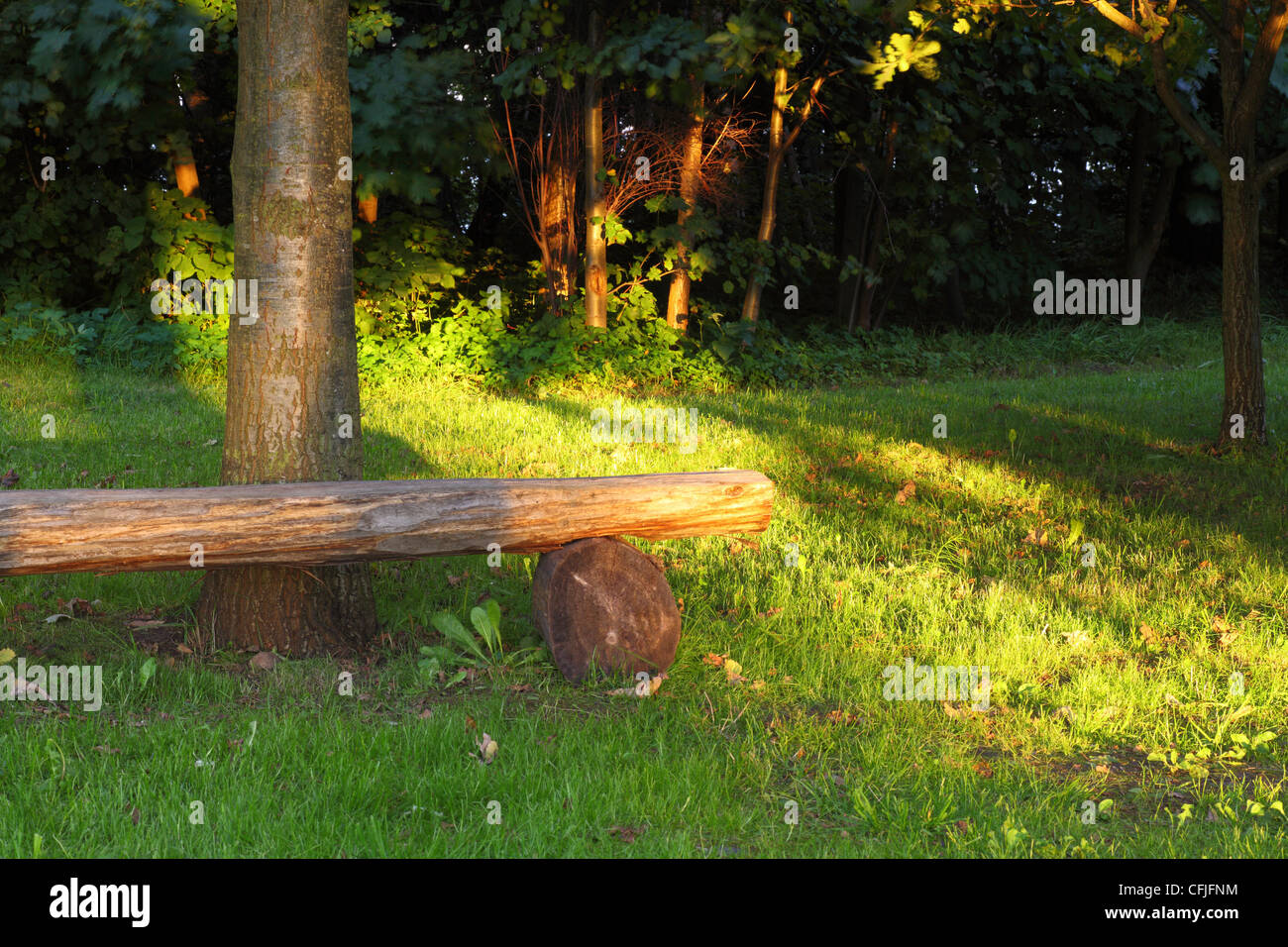 picnic place Bench in the park at sunset Stock Photo Alamy