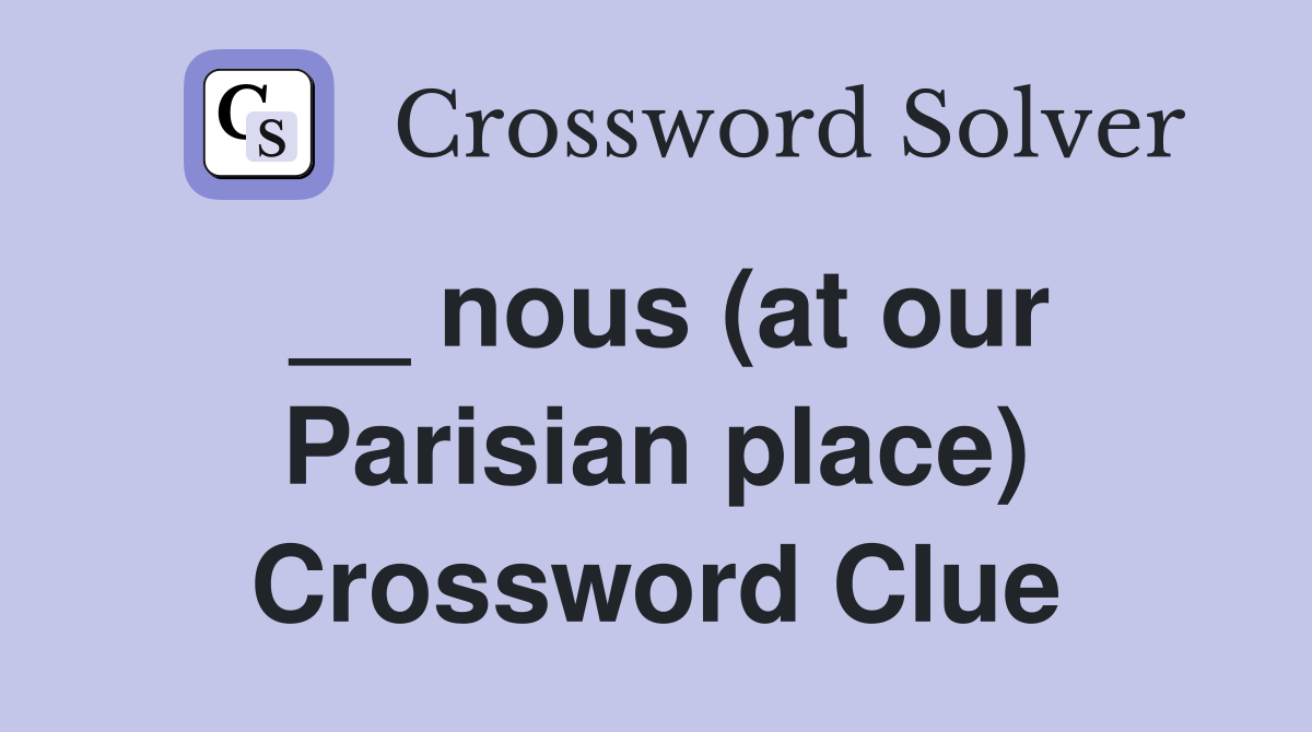nous (at our Parisian place) Crossword Clue Answers Crossword Solver