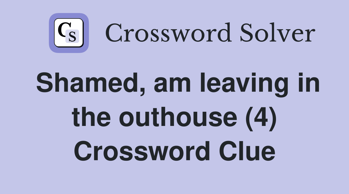 Shamed am leaving in the outhouse (4) Crossword Clue Answers