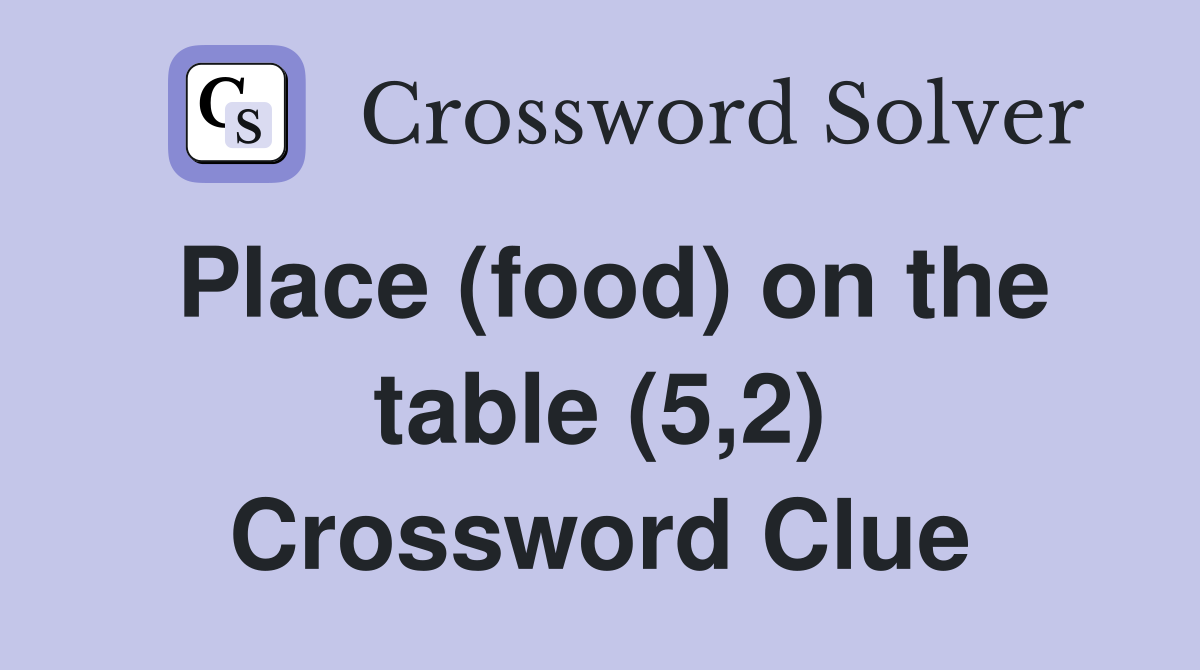 Place (food) on the table (5 2) Crossword Clue Answers Crossword Solver