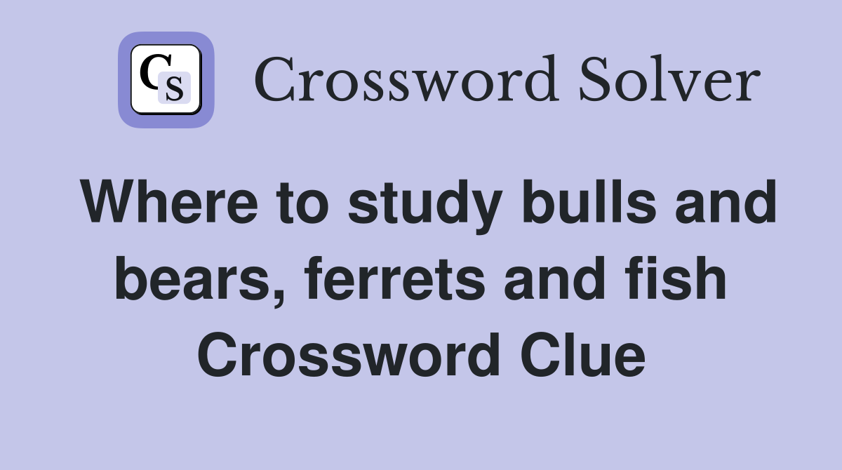 Where to study bulls and bears ferrets and fish Crossword Clue