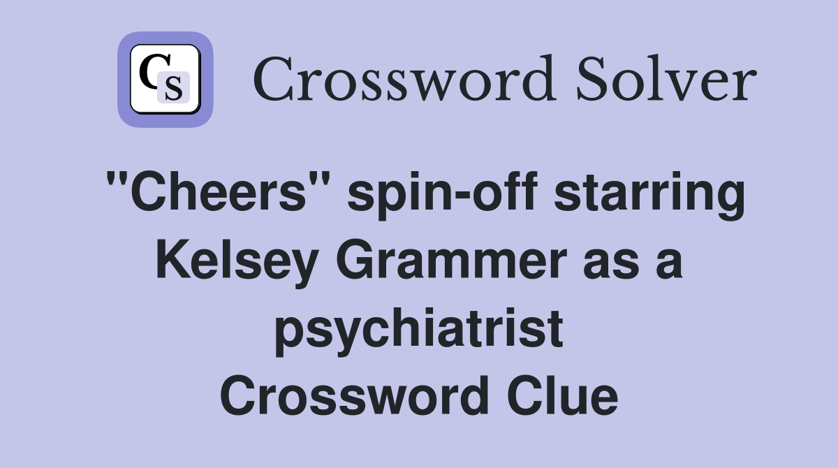 quot Cheers quot spin off starring Kelsey Grammer as a psychiatrist Crossword