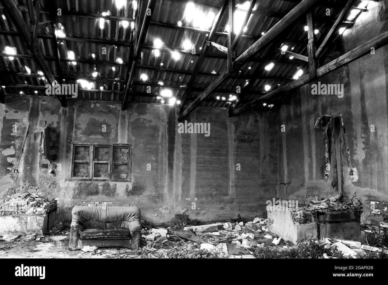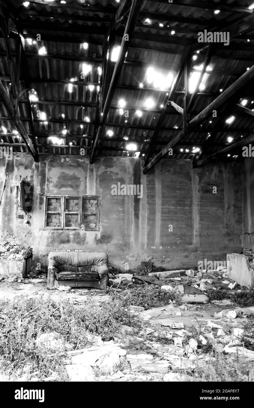 Remains of abandoned buildings of the mines of La Union village Stock