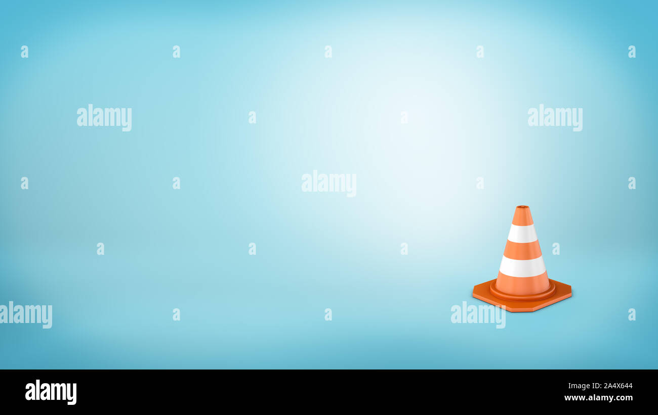 3d rendering of a striped traffic cone placed on blue background Stock