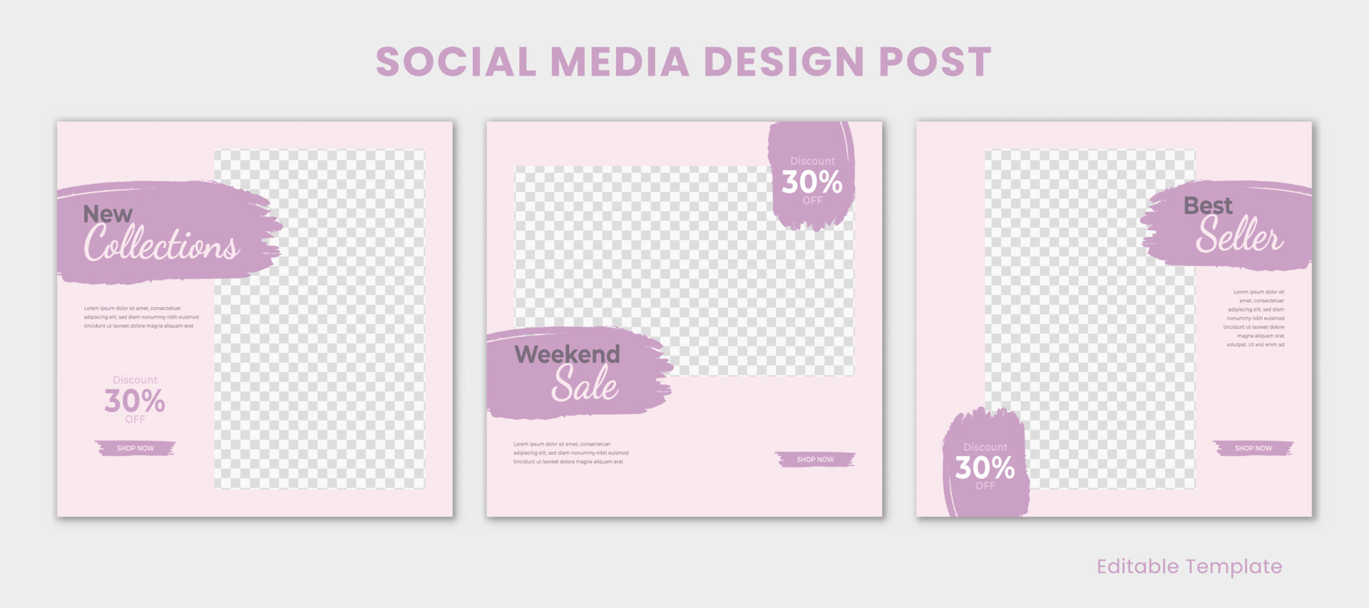 Set of Editable Template Social Media Design Post with Rectangle Frame