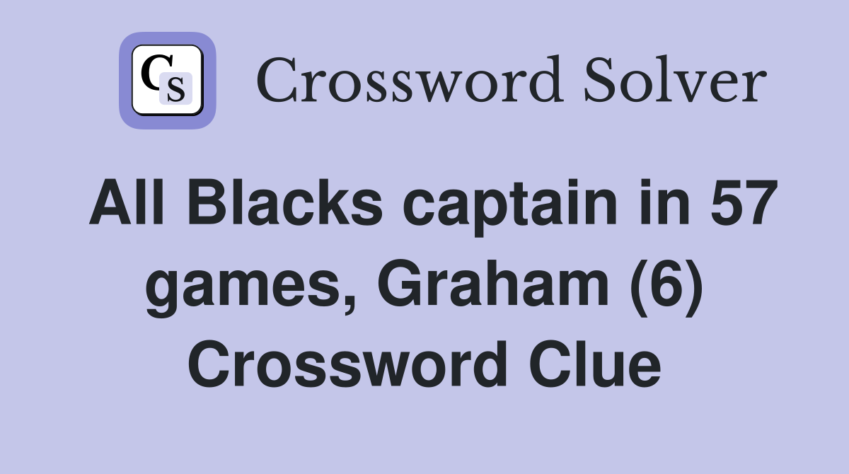 All Blacks captain in 57 games Graham (6) Crossword Clue Answers