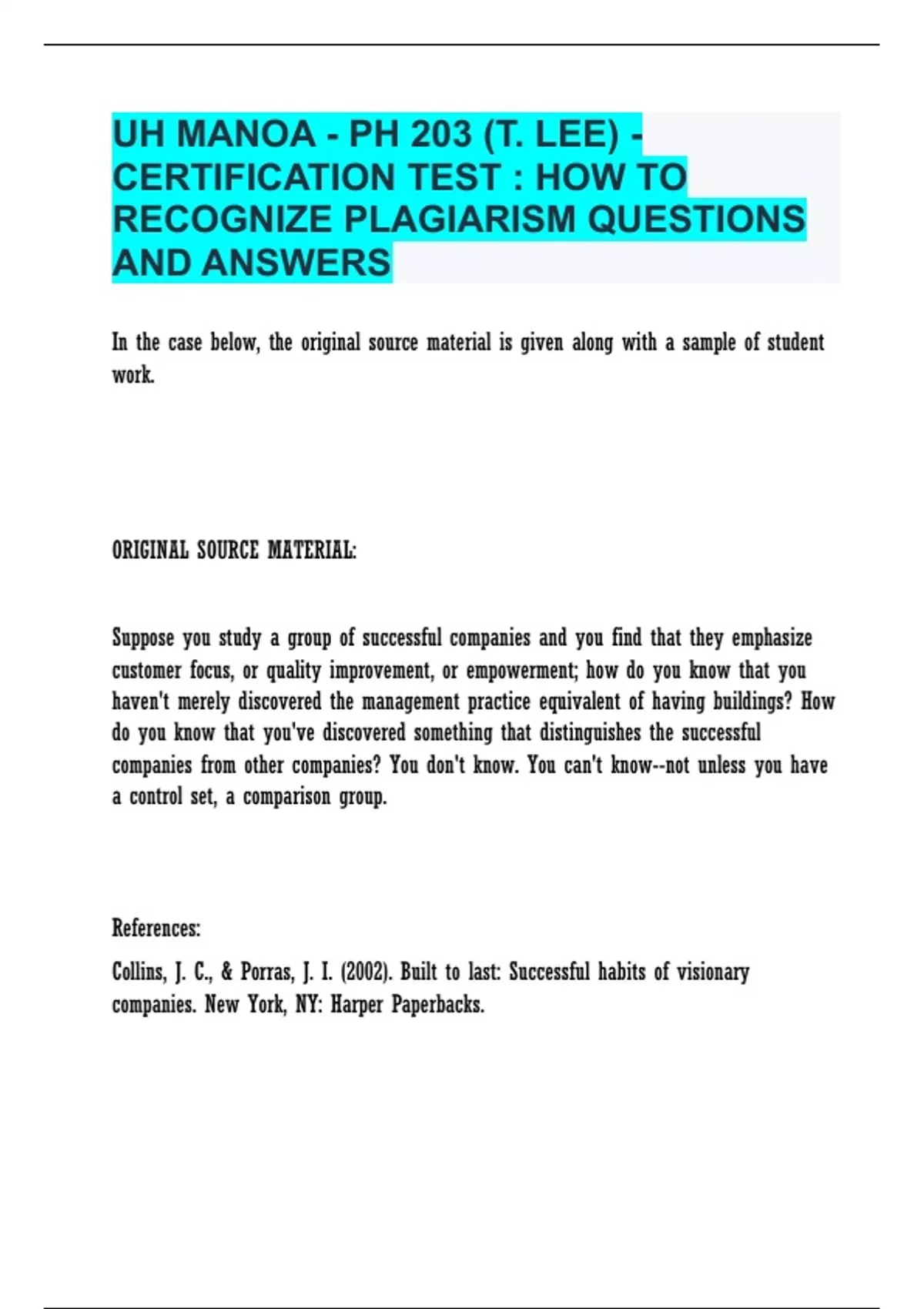 UH MANOA PH 203 (T LEE) CERTIFICATION TEST HOW TO RECOGNIZE