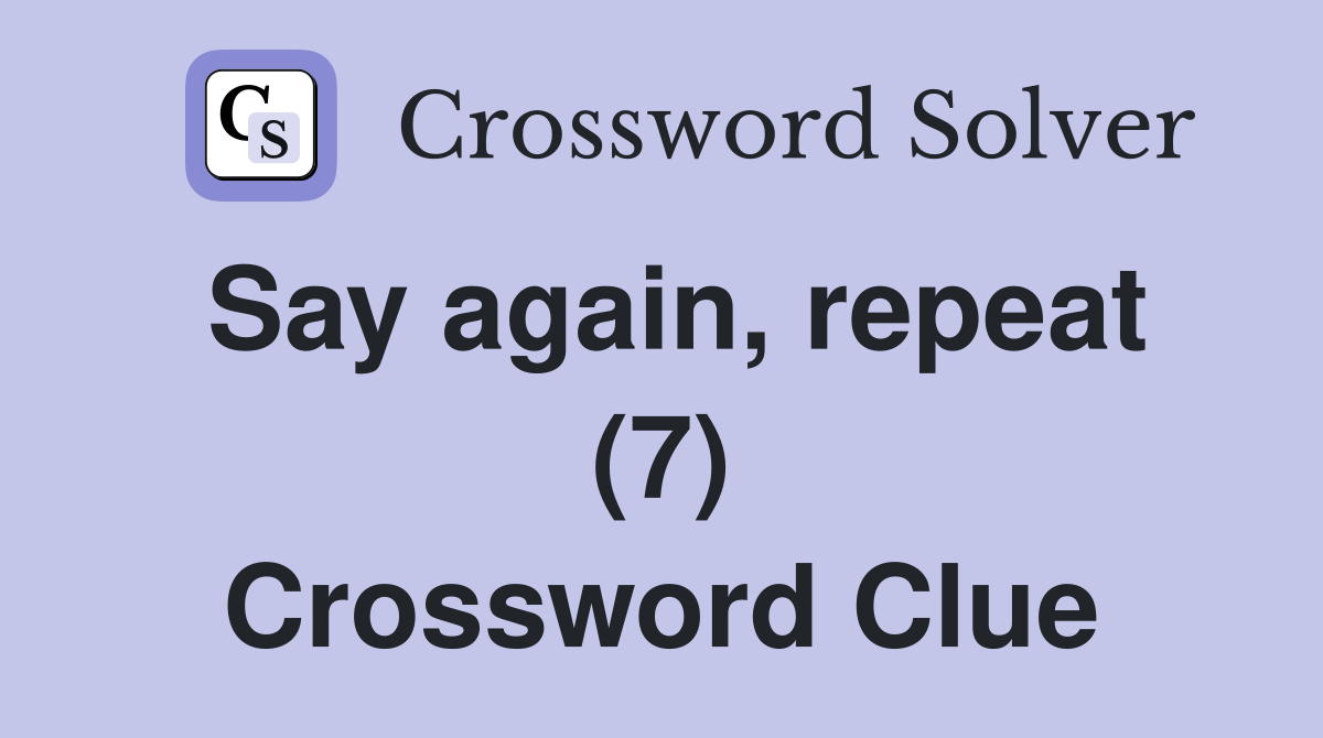 Say again repeat (7) Crossword Clue Answers Crossword Solver