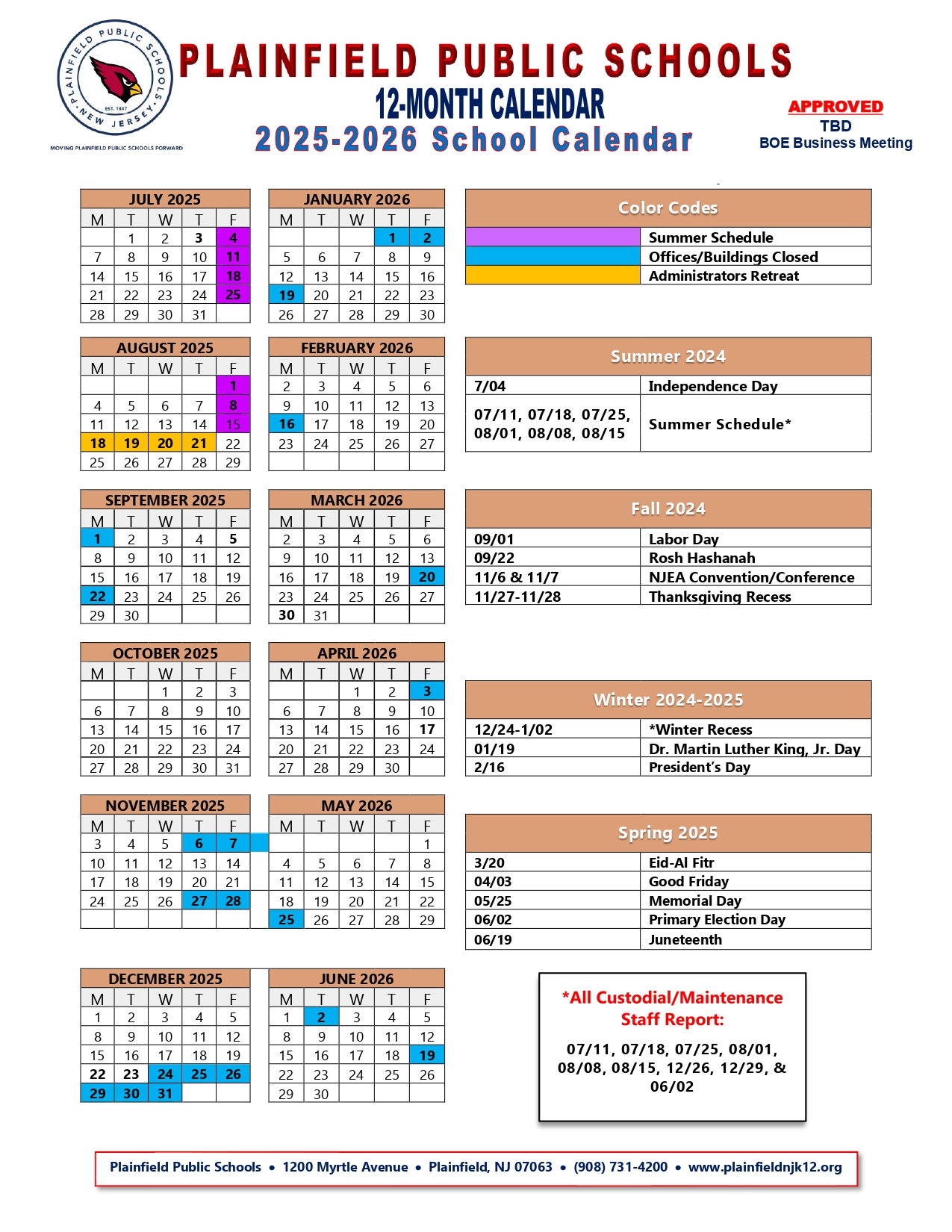 Plainfield Public Schools Calendar 25 26 Revised PDF EduCounty