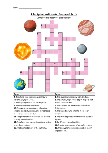 Planets crossword worksheet Artofit