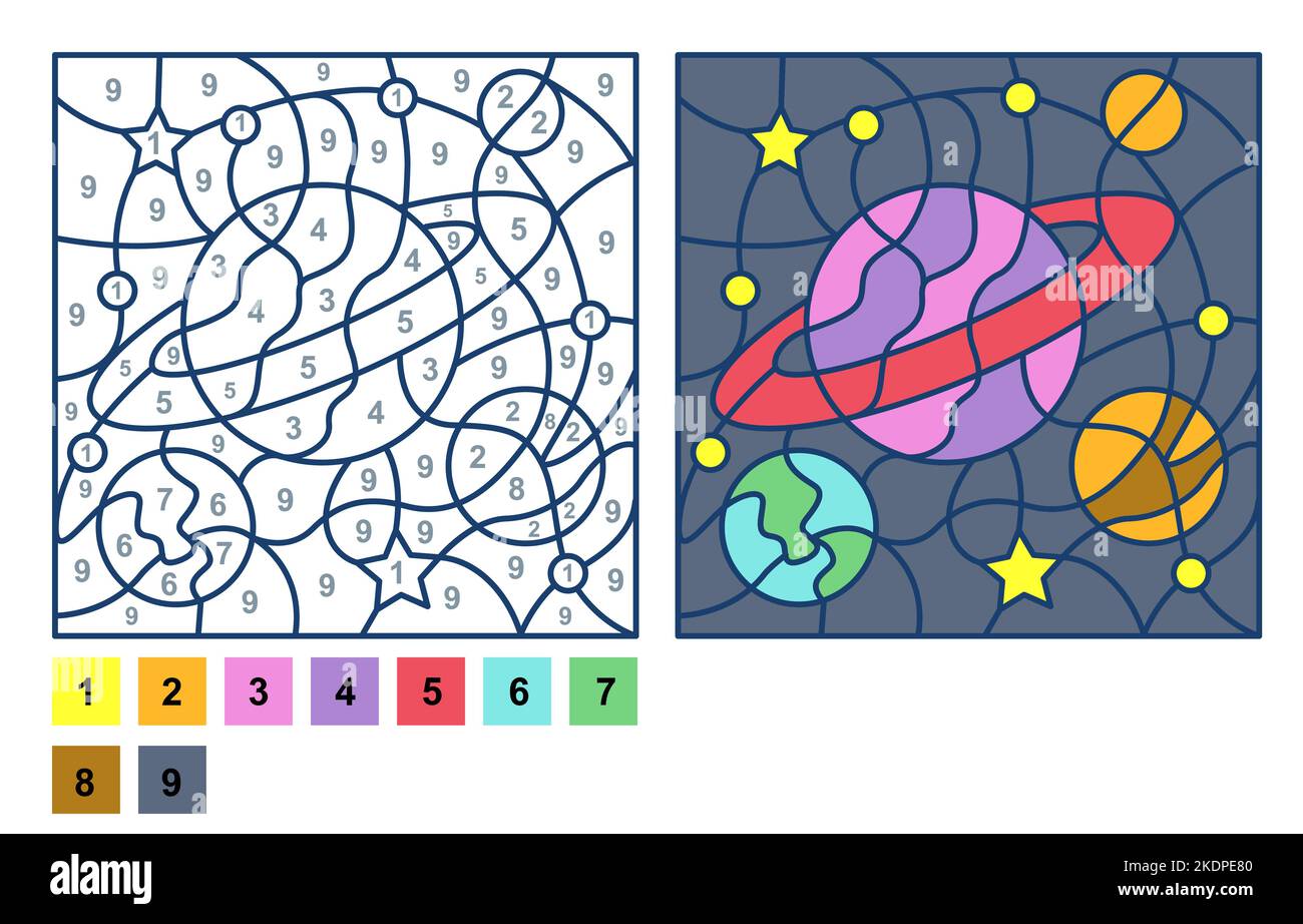 Kids Math Game Worksheet with Cartoon Space Planet Stock Vector