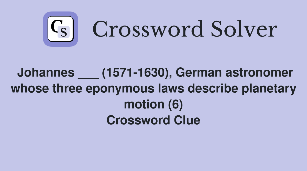 Johannes (1571 1630) German astronomer whose three eponymous laws