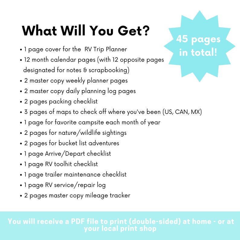 RV Trip Planner: 45 page Printable Travel Organizer (digital Download
