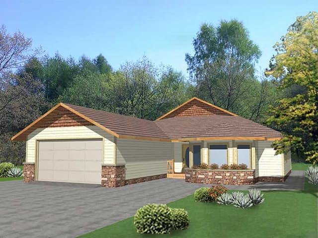 Modern Two Bedroom House Plan with 2 Car Garage 1268 Sq Ft 69626AM
