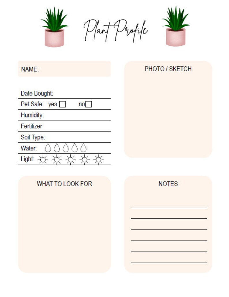 Plant Profile Template Etsy